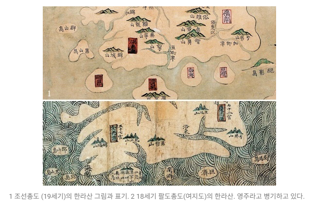 조선 후기의 여러 고지도 <여지도> ‘팔도총도’, <지도서> ‘동국대총’, <지도> ‘동국팔도대총도’에서도 한라산이라는 이름 옆에 ‘영주(瀛州)’라고 표기되어 있는 사실이 확인된다(지도3).